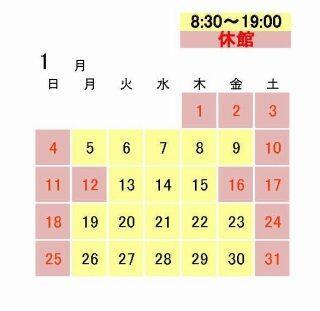 1月の開館カレンダー